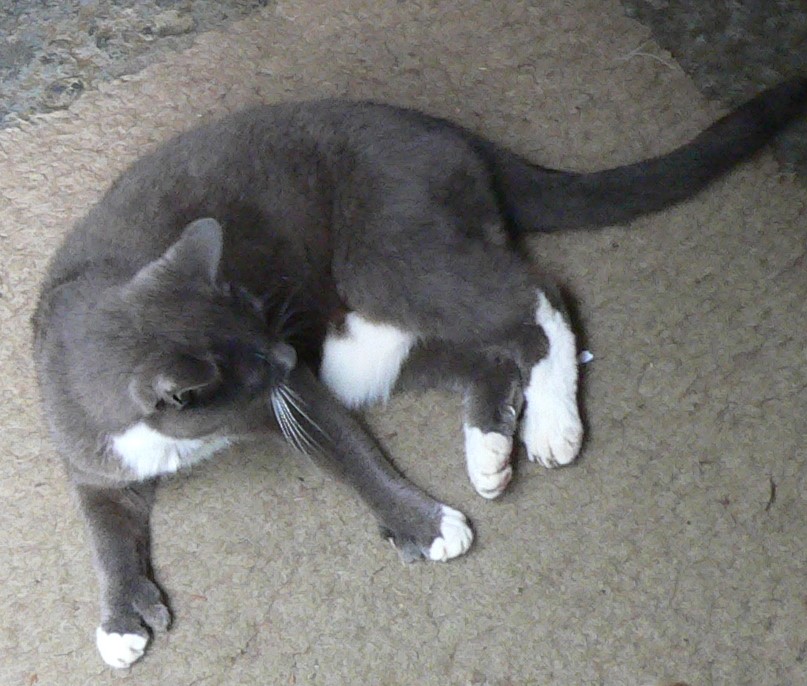C is for Cats. You can see Tessa on the header. Ideally you want a black cat for luck, she was grey (blue?) but the good news is she was polydactyl (extra toes) which apparently is super lucky. You can see them here on her front paws.