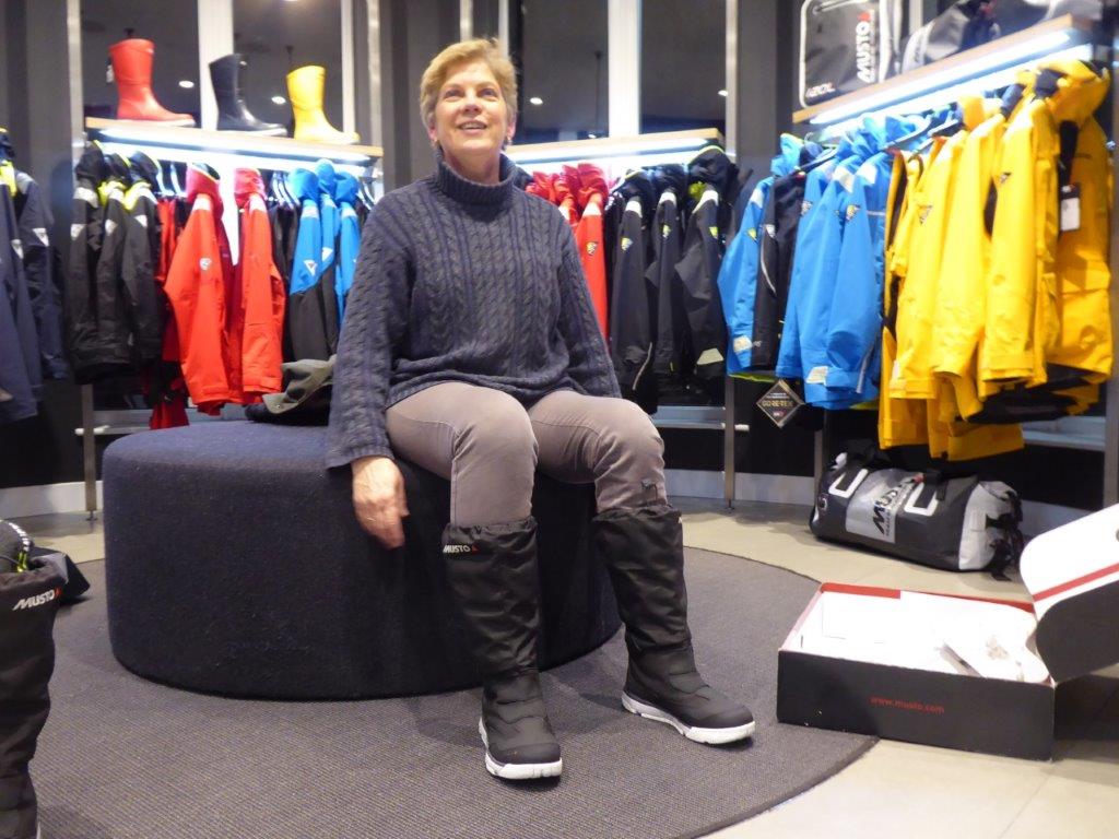 The shopping in Gunwharf Quays looked very good but we walked right through past all the restaurants and shops to get to…MUSTO! The whole plan had been to buy me some boots (I thought). We came home with four big bags of stuff, not all of it for me. As well as my boots I bought a big “foulie” jacket and some trousers. John bought boots, jacket and more. I think we’re keeping the company afloat single-handedly.