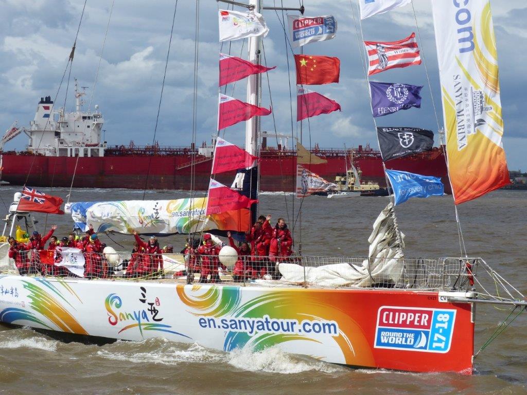 The back up for the yachts is about four shipping containers that travel around the world to each port with the maintenance crew from Clipper. They need to be in place before the boats arrive as they have all the publicity banners, support staff, replacements bits of kit etc. Therefore, the arrival window for MBB is not an absolute date. If the containers get delayed there could be an extra local race to keep The Eleven busy or they may just hang around out at sea until the support staff are ready for them. In addition, each yacht will have taken a different time to cross from the start to the finish and may have hit delays. We don’t have a pretty picture of them all arriving together as happened at Liverpool last year (when they were “held” outside until the tide was just so then raced in for the last few miles). The arrival window could be three or more days.