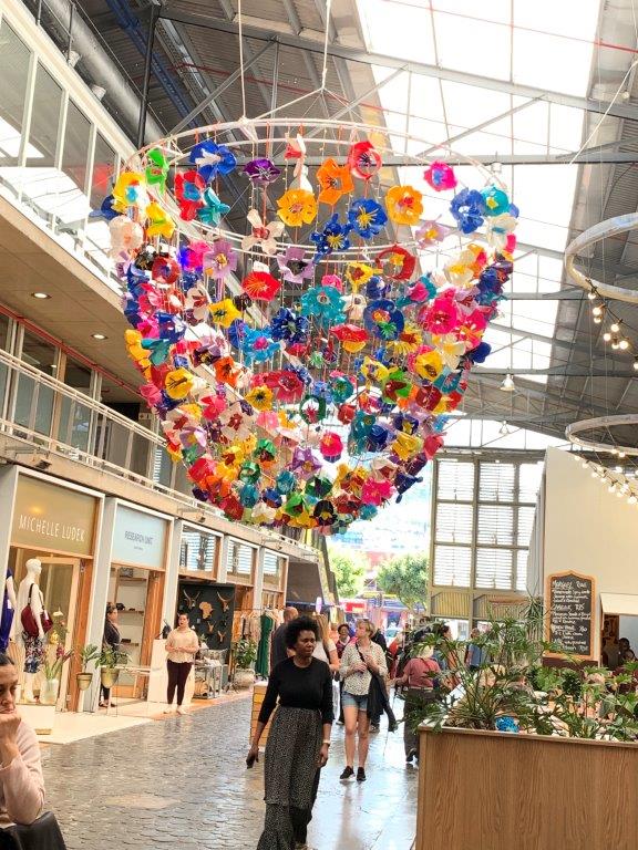 There were some stunning chandeliers in Cape Town, as well as the one above, which looks like slices of red and green grapes, the one below was in an artisanal shopping area called The Watershed, where John bought me two dresses (Geoff, a fellow Unicef circumnavigator, has been buying one at each port for Cheryl). You can see one in the photo above of me with Cheryl and Fiona and a glass of fizz.