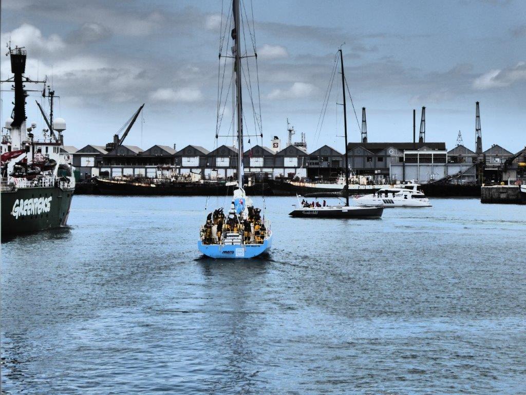 Then at the start of Race 4 out of Cape Town, Punta del Este (PdE) and Visit Sanya collided, badly enough to have to return to the dock for repairs. I was out in a spectator boat and got a shot of them tangled together but I can’t put it here, it’s too painful. However, out of a disaster comes some good, Punta donated all their fresh food to a local Captonian charity rather than have it go to waste. Both boats are being repaired and should be able to get to Fremantle in time to join Race 5 to Airlie Beach in The Whitsundays.