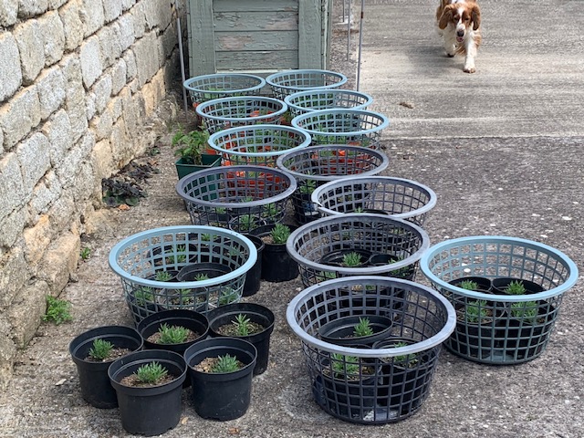 Since I last wrote, JD has been travelling around the country (by car in splendid isolation) to see various family members. George was back on the water for a weekend, getting experience towards his Yachtmaster qualification, then jetting off to visit family further afield. He’s our guinea pig in terms of travel. I have been weeding, harvesting (not tomatoes yet), potting up, trimming etc in the garden, plus sorting my books. The lavenders were re-potted a couple of weeks ago and are going great guns (compare today’s header to the photo in Post 93 dated 25th May 2020).
