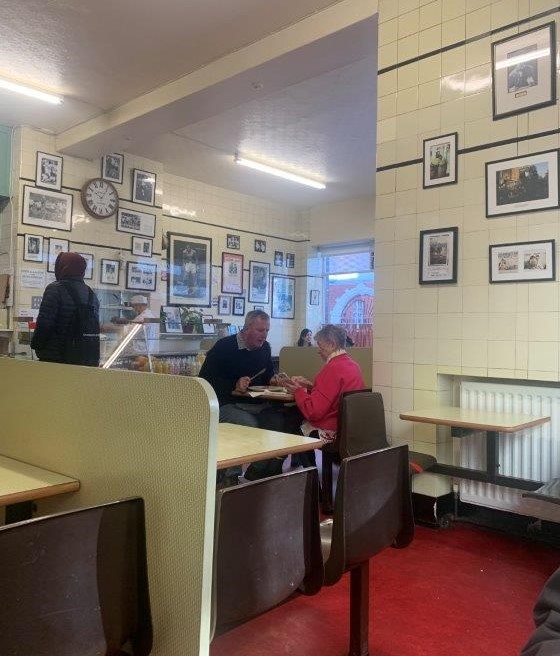 Another memorable meal was at the Regency Café a few minutes’ walk from the flat. It is famous for its breakfast (“the best English breakfast in London”) and not allowing you to book a table. I was going to post a picture of the breakfast we had but it might put you off your salad! In the pre-pandemic days we were told the queues stretched around the block but no more. I think it used to be frequented by Westminster workers but we didn’t recognise any MPs there.