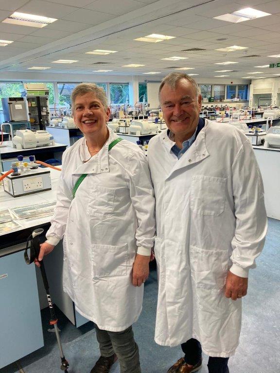 While I’m on Universities, I decided to follow JD’s example by donating to my first university, the University of Surrey. I had applied there because the vet schools didn’t want me and Surrey ran an interesting-sounding course, toxicology, one option of the Biochemistry degree. If you want anyone poisoning surreptitiously, just ask me. Actually, don’t, as I’ve forgotten everything I ever learnt. I only hope no-one I know dies in suspicious circumstances. Here we are inspecting the labs, very different from my day.
