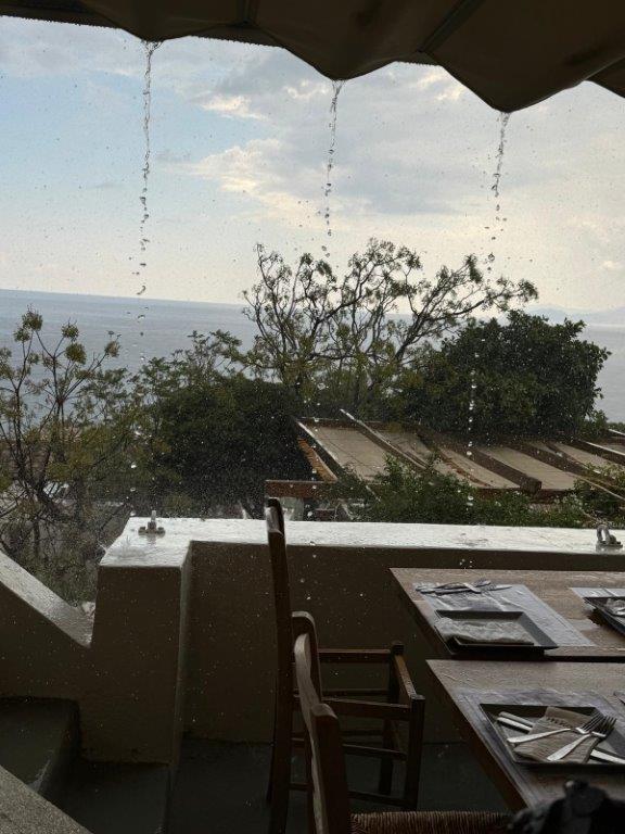 Wednesday I was not going to miss out. We were on Samos for nine wines at the Vakakis vineyard, then had a magnificent Michelin-worthy late lunch at ‘Orizontas’, where they paired the ten wines with suitable food for each. Dinner that night was a little subdued as we were all still full. We managed not to upset the chef too much though. Samos is very close to Turkey: we spotted the Greek navy patrolling the waters between us and the mainland.