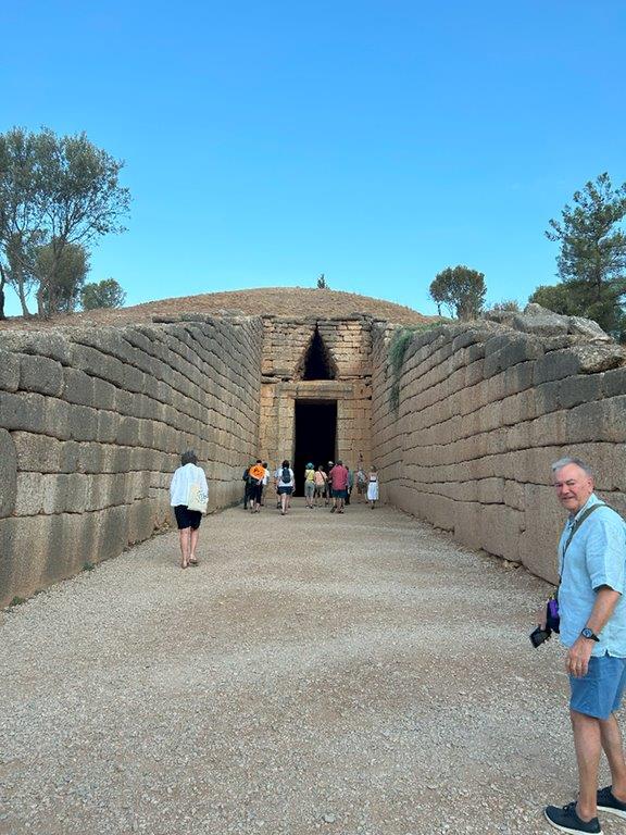 We flew into Athens to a torrential downpour and joined the boat. A quick glass of sparkling wine and we were off to our first destination. Due to the weather, there was a slight change in islands visited, but as we knew nothing about Greek wine or islands, that didn’t worry us. We were meant to visit Poros but went to Aegina instead. Saturday we were inland, Nafplio and Nemea via Mycenae. It wasn’t all drinking; at Mycenae we saw the ruins and Lion Gate. This is not it, but the entrance to the Treasury of Atreus or Agamemnon. A very large tomb, where we all stood right in the middle and sang (sort of) to sample the acoustics. We were there before the crowds so had the place to ourselves. Very atmospheric and worth a proper visit one day.