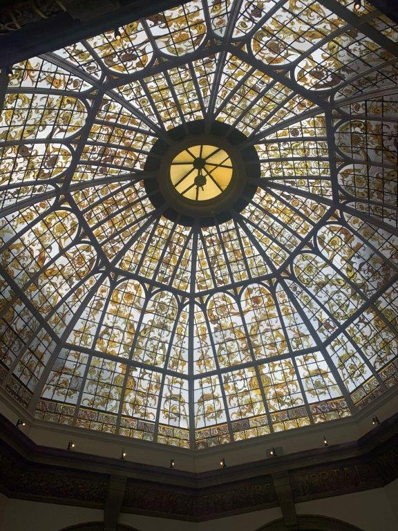As I’m a supporter of the LPO, as well as their anniversary concert we went to the Battersea Arts Centre for a Gala dinner with some pals. This is another impressive venue where I do have a photo, of the roof (shown near the beginning of this Post). It was built in 1893 but scheduled for demolition in the mid-1960’s with a swimming pool planned to replace it. Luckily it was saved, only to suffer a devastating fire in 2015. You can see the fire-damage in the photo below.
