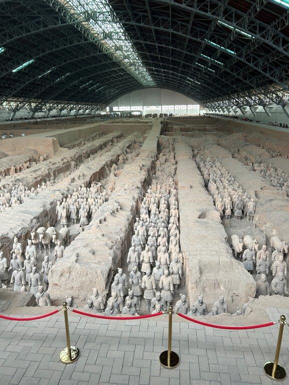 The next day a driver took us around the city then off to see the Terracotta Warriors. We went by the South city gate, very ornate as it was the main entrance to the old city. Like so many old cities it was walled, if you fancied you could walk or cycle all of the 15 km around. I declined but JD and George did part of it later in the week. I also missed the Big Wild Goose and Little Wild Goose Pagodas, ancient Buddhist temples. I don’t think any geese were involved in their construction.