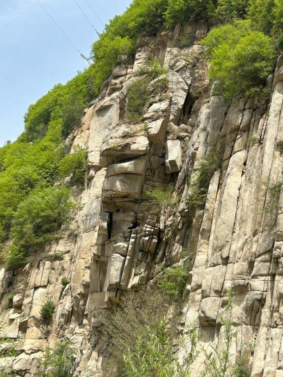 Through the mountains, we came to a massive quarry. We worked out that it was probably mining molybdenum. Moving on, back towards Xi’an, we met a traffic jam in the middle of nowhere. G got out to investigate and told us there was a gate closed across the road. Shortly after, a water bowser and truck full of rubble passed us. When we were allowed through, they were being used to improve the road which went around a reservoir, either very dry or under construction.