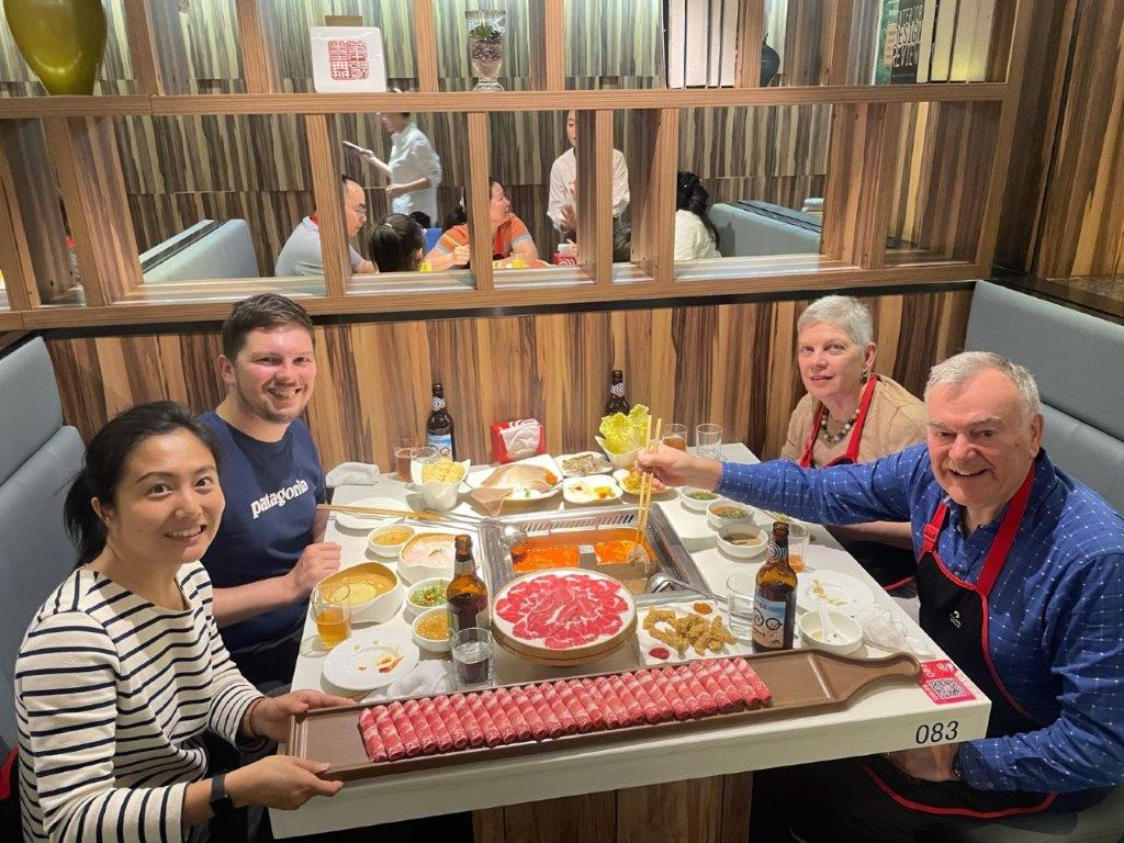 Whilst in Xi’an we tried a hotpot restaurant and a Korean grill. At the first you cook your own food; you can see that the amateurs wore aprons to protect their clothes.